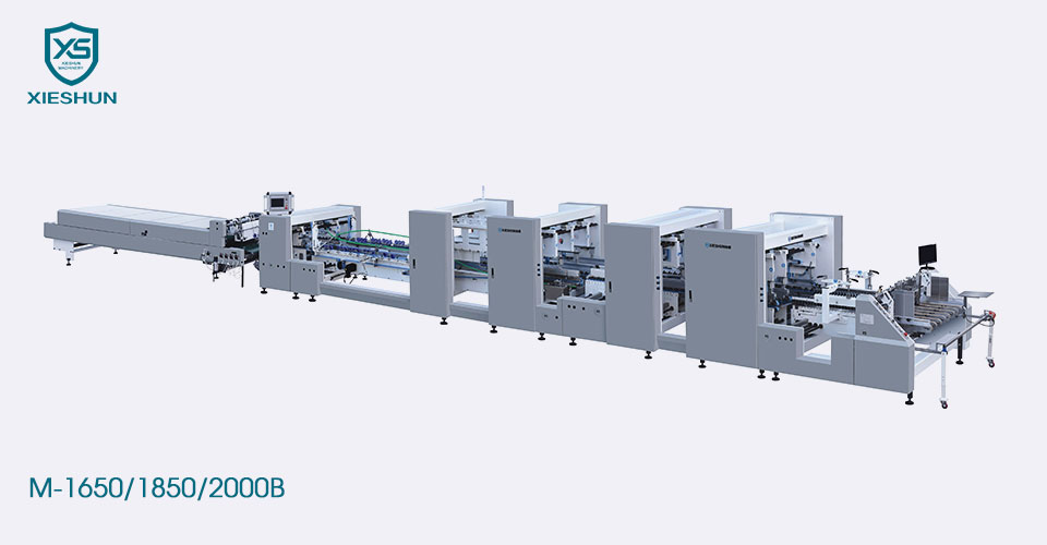 Cina Xieshun M-1650/1850/2000B Automatico Duty Duty Orguimento della cartella Logo Sudditore Glurista, Utilizzare PLC e componenti elettronici importati, alimentatore con servomole indipendente, la piastra interna viene spostata utilizzando guide lineari per garantire la precisione e la facilità di funzionamento.